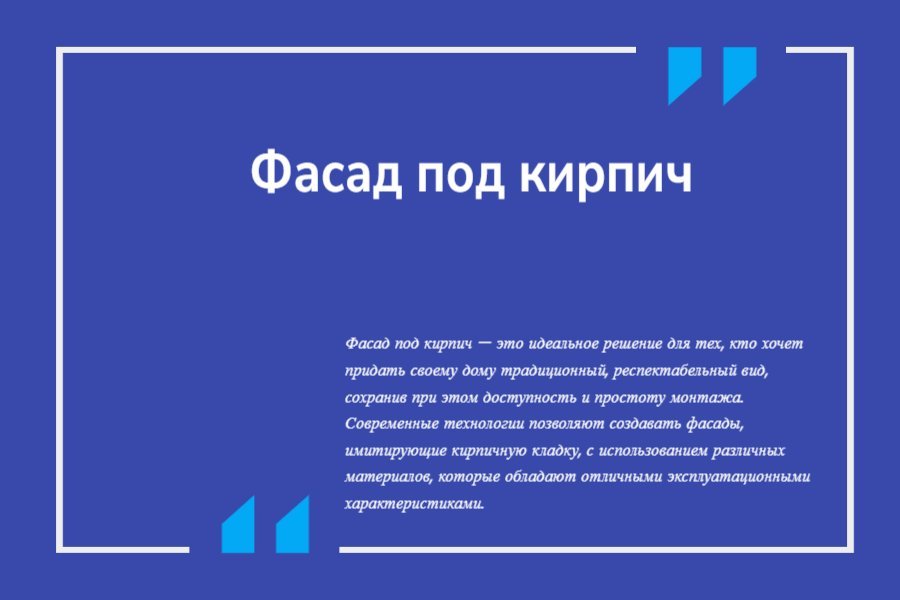 Фасад под кирпич — это идеальное решение для тех, кто хочет придать своему дому традиционный, респектабельный вид, сохранив при этом доступность и простоту монтажа. Современные технологии позволяют создавать фасады, имитирующие кирпичную кладку, с использованием различных материалов, которые обладают отличными эксплуатационными характеристиками.